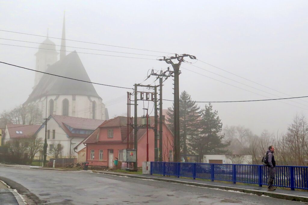 Osud vtělený do dvou seniorů si přál, abychom vystoupili v Doubravníku. Super. Lezeme z vlaku a pod kůži se vkrádá nepříjemná zima. Jaký rozdíl oproti teplému Brnu. Vymýšlím trasu a jdeme přes řeku, náměstí a kolem kostela stoupat po zelené do kopce. Je to nepříjemně táhlé stoupání, které snad nekončí. Kopec, co nemá konec.