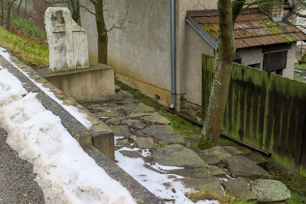 Rodný dům Jozefa Uhra nalevo a historická zvonička napravo.